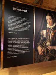 Jeg får øjenkontakt med kvinden med det hvide hår, den sorte eyeliner og de knaldrøde læber fra tidligere, og vi udveksler et indforstået blik. Han bliver stående længe. Mellemlangt sort fedtet hår, Temu-goth og med en attitude der emmer af dårlig opdragelse. Hans ord skærer gennem stilheden, og jeg kan mærke både min – men også andres irritation vokse. Det hjælper ikke, da han højlydt erklærere, at udstillingen er “noget lort” og “spild af penge.” Det er næsten komisk. Her står vi midt i en facinerende udstilling om kvindeforfølgelser, hvor mænd med et peg, kunne afgøre en kvindes liv – nu står en mand og beviser pointen: tiderne har måske ændret sig, men blikket har vist ikke.
